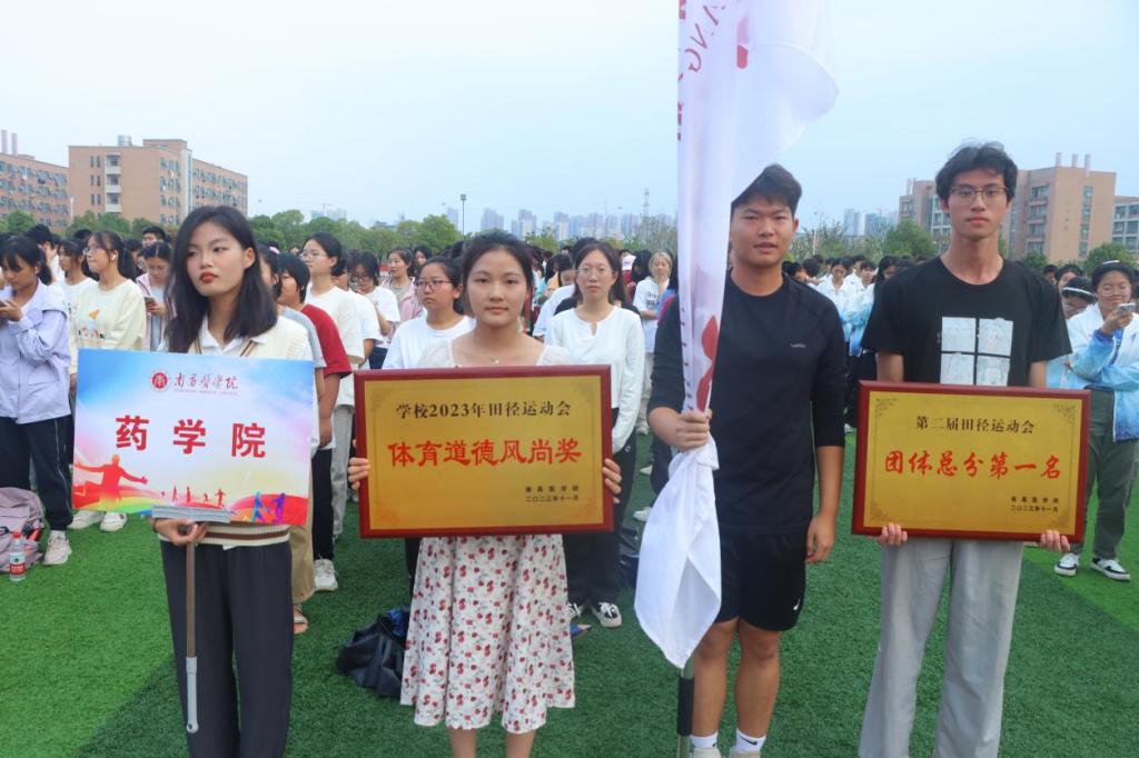 两天的赛场上,yL23411永利集团师生朝气蓬勃,奋力拼搏,在师生共同努力下,我院赢得了七个一等奖、八个二等奖、十二个三等奖及团体总分第一名,体育道德风尚奖的佳绩,2022级药学3班蒋道锟同学以9分52秒94打破了yl23411集团男子3000米记录。