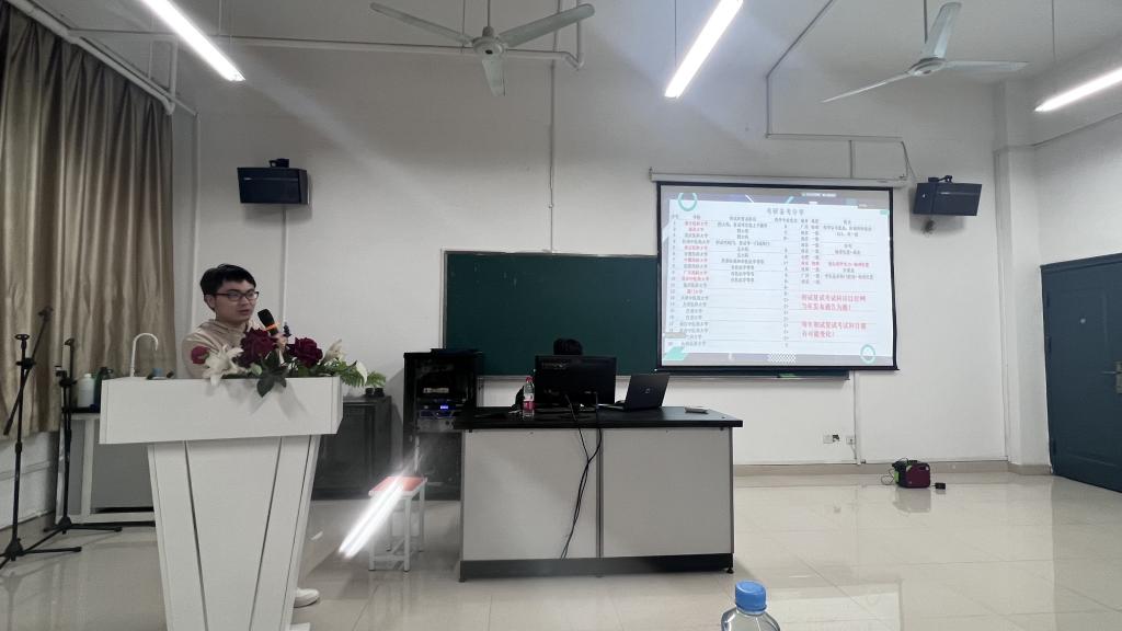活动伊始,刘根林作分享会致辞,鼓励大家保持学习的态度,戒骄戒躁,不断提升自己。首先由罗雲学长进行线下分享,其余几位学长学姐进行线上分享。在分享过程中,他们以生动有趣的形式阐述自己的定位、学习方法,向大家总结了个人经验以期帮助同学了解考研有关事项。交流环节中,线上线下同学们积极参与,踊跃提问,学长学姐耐心解答,活动氛围热烈活泼。同学们也纷纷表示通过分享会的学习,自己对于前路更加坚定,方向更加清晰。最后,刘根林书记总结讲话,在感谢分享的学长学姐们的同时,也对同学们寄予厚望,希望同学们坚定梦想,拼搏向前。