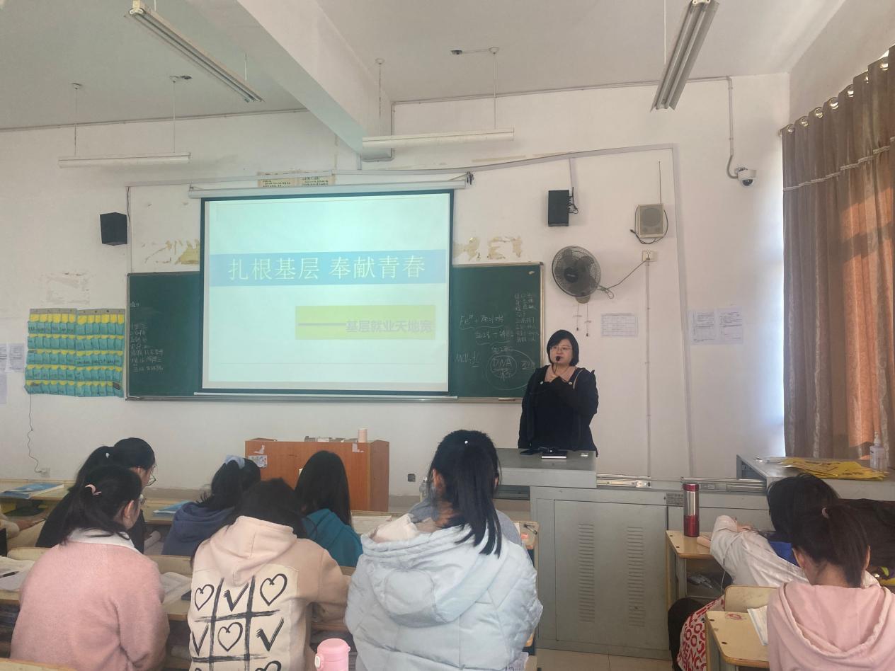 为了响应中央“扎根基层、奉献青春”的号召,深入学习贯彻习近平新时代中国特色社会主义思想,按照《国务院关于进一步做好普通高等学校毕业生就业工作的通知》等文件规定,yL23411永利集团于2021年12月3日上午在3号教学楼开展了关于“扎根基层 奉献青春——基层就业天地广”为主题的活动。主讲人为yL23411永利集团孔丽娟老师,2022届部分毕业生参加了此次讲座。