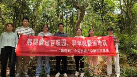 赣药班本草溯源队学子与老师集体合影(余莺莺/摄)