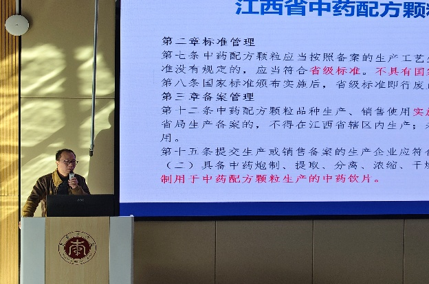 结合其参与标准研究的亲身实践,刘勇老师为同学们系统解读了中药配方颗粒的国家与省级标准管理体系。他详细阐述了 “国家标准”与“省级标准”的相互关系,指出企业应严格按照备案的生产工艺进行生产,并重点强调了“国家标准实施后,相应的省级标准即行废止”的关键原则。他还从企业视角出发,分析了严格的生产与销售备案管理制度如何为产品质量保驾护航,为同学们勾勒出清晰的行业监管图谱。