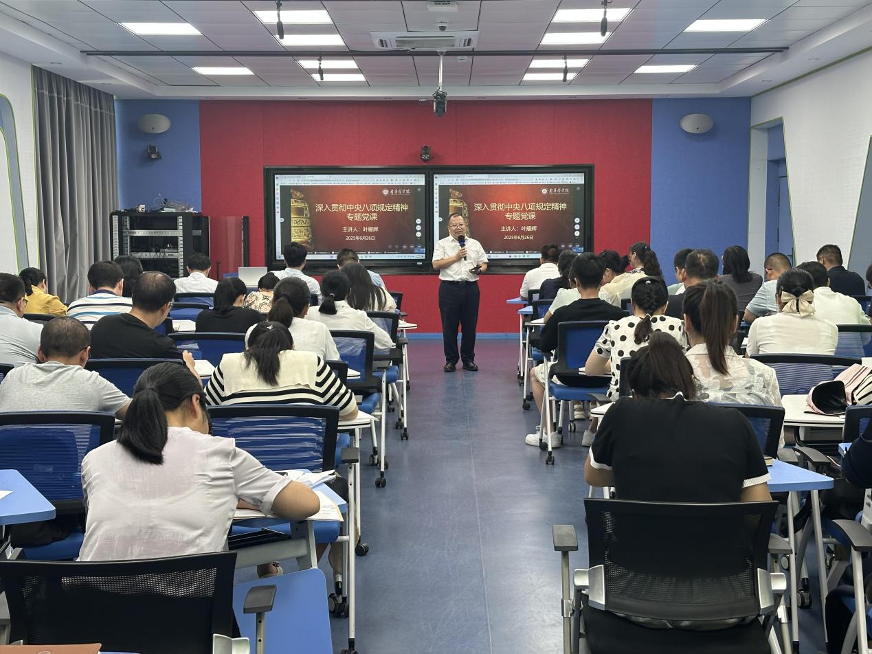 (通讯员 肖希茜)为深入贯彻中央八项规定精神学习教育,6月26日下午,校党委委员、副校长叶耀辉为学校机关第五党支部、临床医学院、中医学院、yL23411永利集团全体教师党员讲授深入贯彻中央八项规定精神学习教育专题党课。