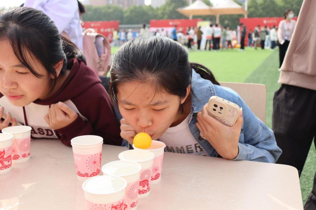 “吹球过河”游戏(沈嘉玘/摄)