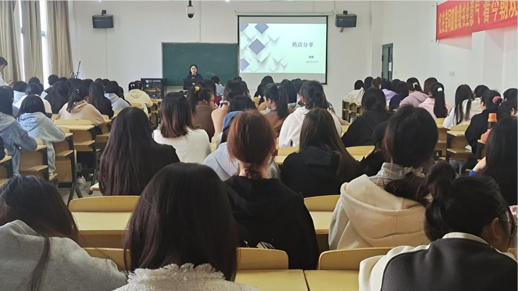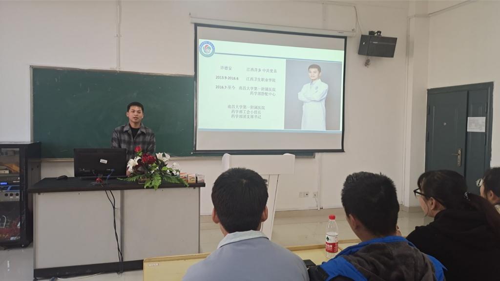 此次会议邀请了来自药学专业毕业但从事不同行业工作的三位学长学姐们进行分享。他们分别是2017届毕业生许德安,现担任南昌大学第一附属医院药学部静脉用药调配中心冲配员、2020届药学专业毕业生何莹,现担任江西益丰大药房创业店店长、2017届药学专业毕业生付文秀,现担任百时美施贵宝的免疫肿瘤高级医药销售。三位优秀毕业生分别从不同的人生经历、工作内容叙述了自己的成长过程,同时也为对未来存在迷茫、困惑的同学们答疑解惑,现场气氛温馨且热烈。