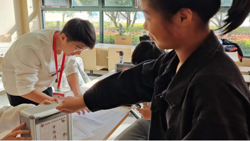 志愿者们将第一届的书信送至收信人手中(郭鑫楠 摄)