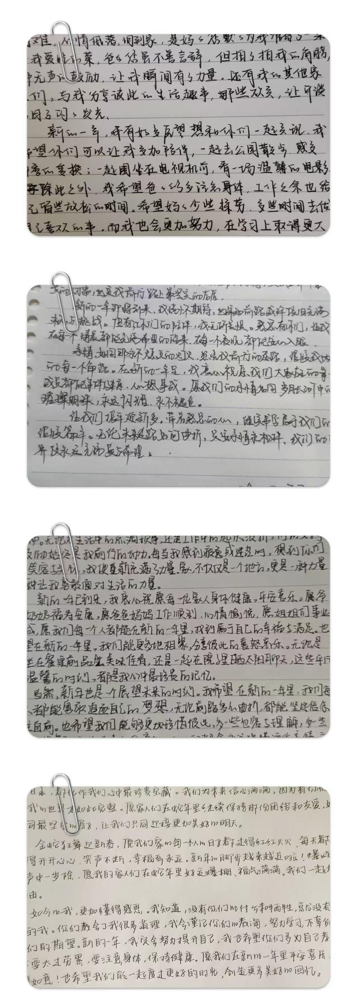 本次活动共分为三个环节。在“寄一张爱的明信片”环节中,学子们以彩笔为媒,绘制出饱含新年韵味、洋溢着感恩情怀的图画作品。这些作品色彩斑斓,充分展现了浓厚的亲情氛围和新年喜庆气息。在“翻转长镜头,定格2025”环节,同学们通过摄影和视频的方式,记录了与家人间的宝贵时刻,让温暖的情感在屏幕间流淌。在“一纸书信,千里传情”环节,我们收到了众多原创书信作品。这些书信中所表达的情感真挚动人,同学们从日常生活的小事入手,叙述与家人之间的故事,用文字抒发对家人的深情厚意。