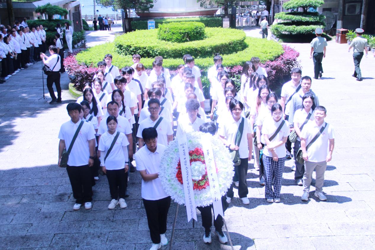 同学们在井冈山革命烈士陵园敬献花圈(陈珏琳/摄)