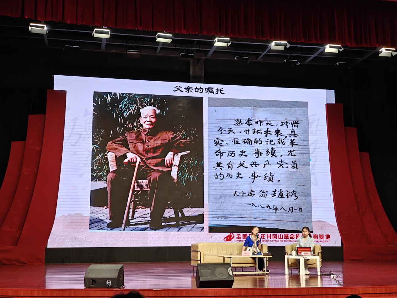 6月24日上午,全国青少年井冈山革命传统教育基地内开展了“致敬•传承——革命后代话初心讲家风”课程。赵镕将军之女赵京娅、赵蕴钰之子张旅天作为嘉宾,深情讲述了自己父亲的革命故事,回忆了父辈们在战火纷飞年代的英勇事迹以及言传身教传给后代的优良家风。当日下午,基地老师以“学会和用好调查研究这个传家宝”为题授课,结合井冈山斗争时期“农村调查”的历史经验,系统阐释了调查研究在决策部署、解决实际问题中的关键作用,为“远志青年实践团”后续乡村调研提供了方法论指导。