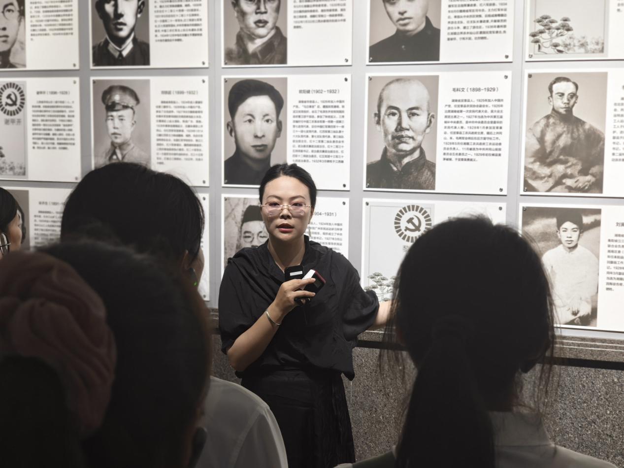 基地郭媛老师为我们介绍革命烈士(陈思霓/摄)