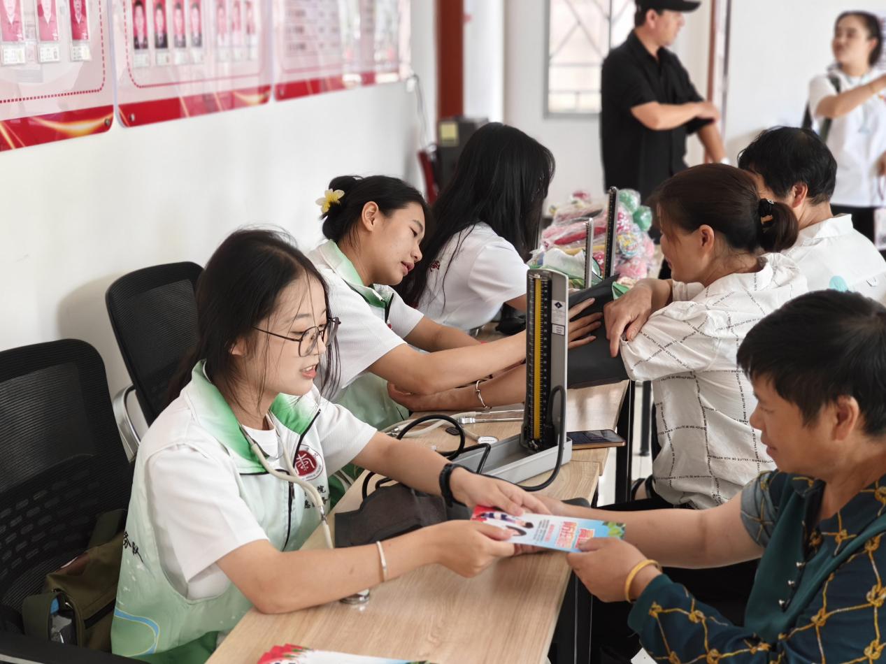 实践队队员为大井村村民测量血压(陈思霓/摄)