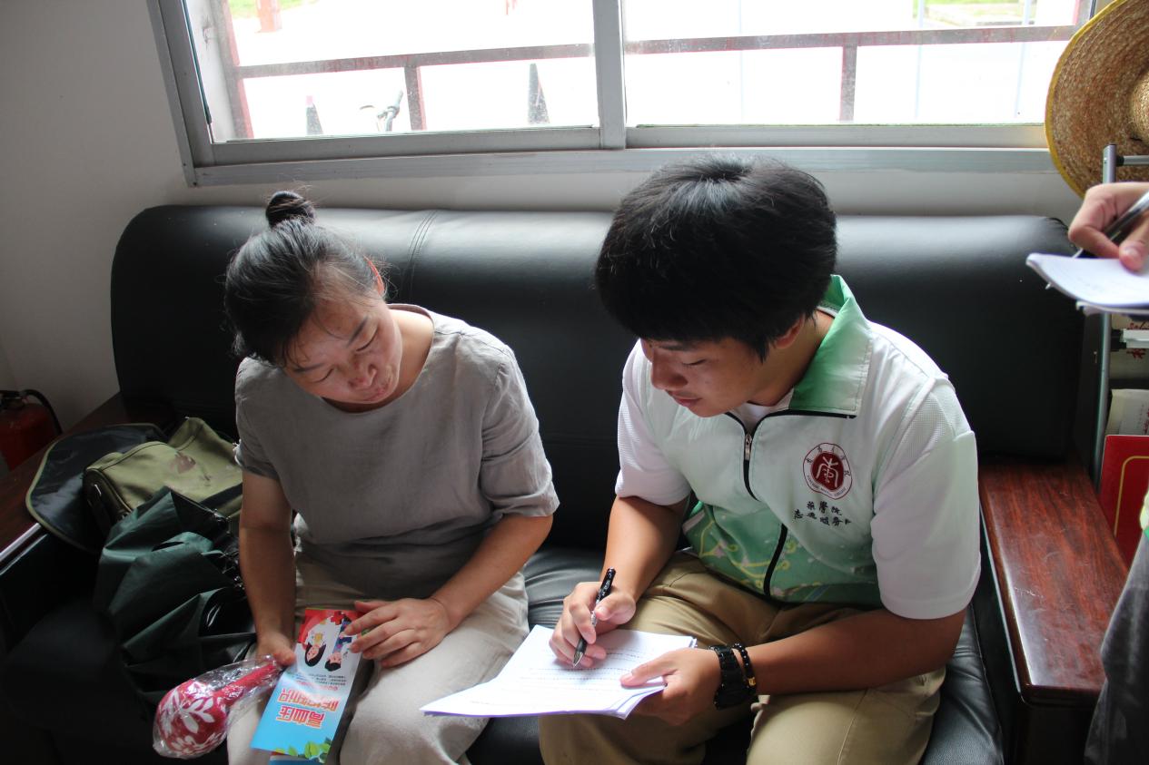 实践队队员调研村民红色文化和中医药文化相结合等问题真实想法(陈珏琳/摄)