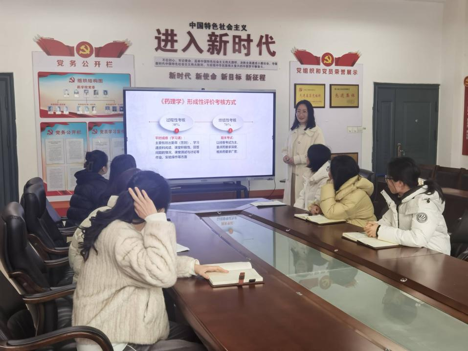 (通讯员:胡慧明)为深入贯彻落实新时代全国高等学校本科教育工作会议精神,全面提升人才培养质量,药理教研室近日召开了新学期开学第一课暨学期初教学材料与形成性评价方案讨论会。会议由药理学教研室副主任胡慧明博士主持,全体教研室教师参加了会议。