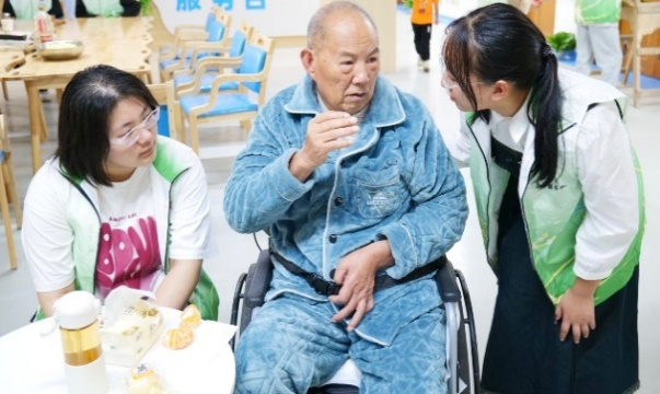 志愿者们与老人互动