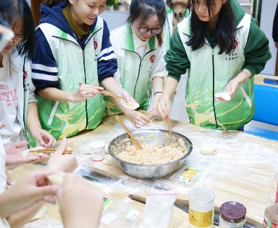 志愿服务活动中,志愿者听从工作人员的安排,分工合作,从小事做起,认真负责地为敬老院的老人们打扫房间,整理内务,清扫庭院,为老人们提供一个洁净的生活环境。活动中,志愿者同老人们齐坐一堂,为老人们捶背捏肩,唠家长里短,拉近彼此的距离,送去无微不至的关心。饺子代表着家庭团聚,是最好的节庆佳肴,志愿者们也特意带来了精心准备的食材,同老人们一起包饺子,共度重阳节。