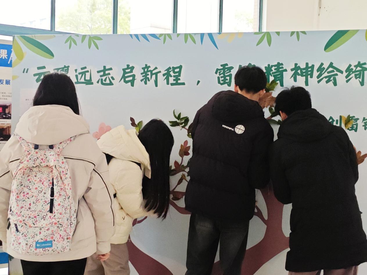 活动首阶段以“云骧远志扬风帆,雷锋精神共传唱”为引领,工作人员有序派发第一阶段300份入场券,并通过线上公众号推送预告、线下海报营造“人人学雷锋”氛围,为后续活动筑牢思想根基。3月4日,第二阶段“云骧远志启新程,雷锋精神绘绮梦”以校园为阵地展开四大活动:参与者通过社交平台打卡分享好事并套圈赢取雷锋文创;在爱心交换站投卡随机交换,深化雷锋精神理解;收集落叶拼贴“雷锋树”让精神具象化;照片墙展示志愿服务瞬间,吸引师生合影定格奉献身影。