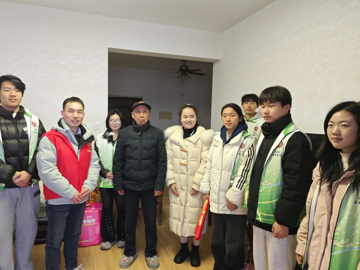 指导老师李棋慧与社区工作人员带领志愿者一同探望空巢老人(陈思霓/摄)