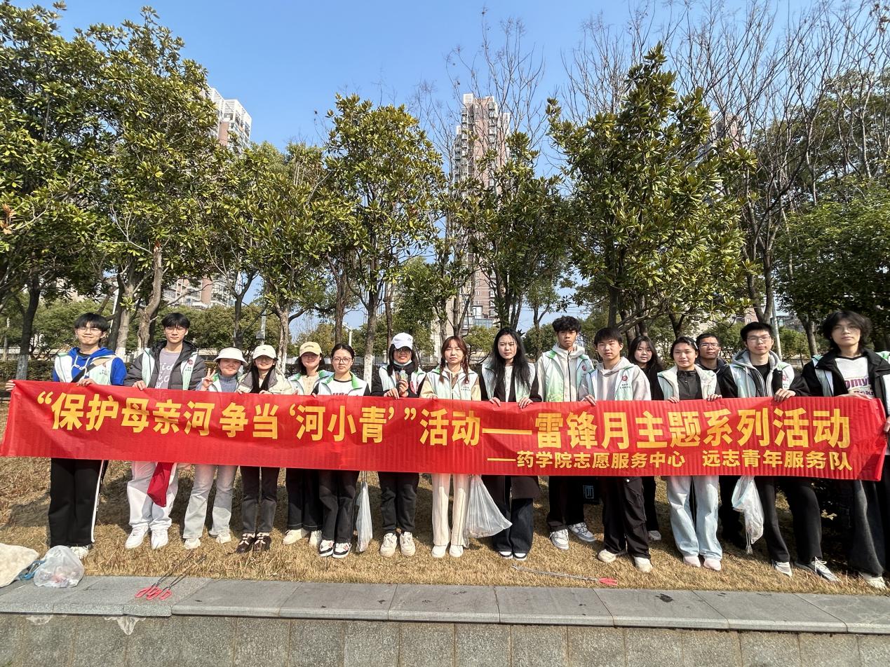 “保护母亲河,争当‘河小青’”雷锋月活动志愿者们合影 (王梓荟/摄)