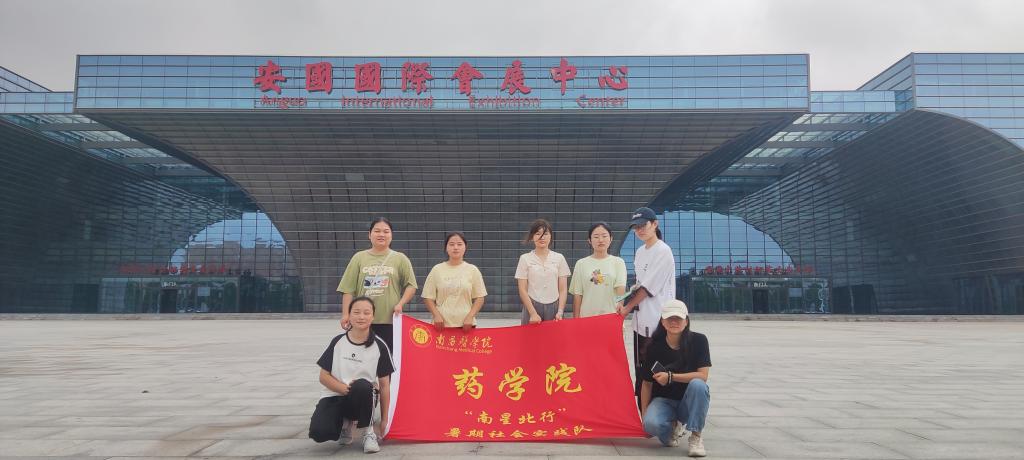 图为实践队队员在安国国际会展中心-中药材批发交易市场合影