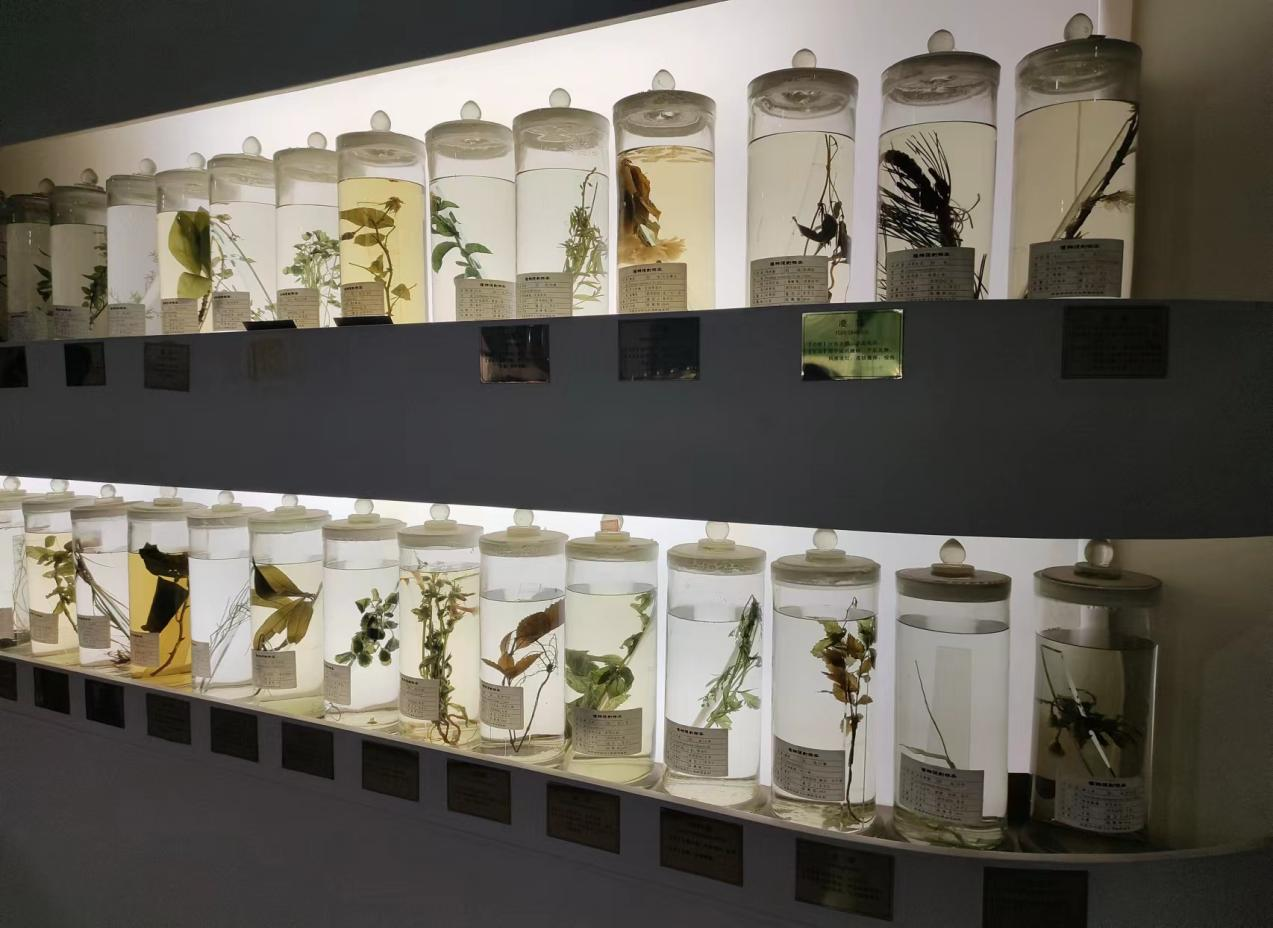 图为安国中药文化博物馆陈列的药用植物浸渍标本