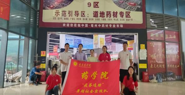 7月21日,实践小队在指导老师的带领下来到了中国亳州中药材专业市场,了解了亳州中药材市场发展现状,并与当地市场经销商就主流品种、道地药材、大宗药材、药食同源类药材的来源、价格等信息进行深入交流。