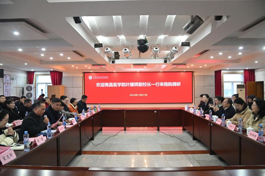 (通讯员:李泽华)12月27日上午,学校党委委员、副校长叶耀辉带队前往江西省中医药研究院走访看望实习生和指导毕业生论文开题答辩工作,并开展调研座谈,教务处负责人鹿秀云、科研处副处长刘亚丽、yL23411永利集团副院长刘素兰等陪同,省中研院党委书记、副院长李士虎,党委副书记、院长彭日煌等领导出席座谈会。