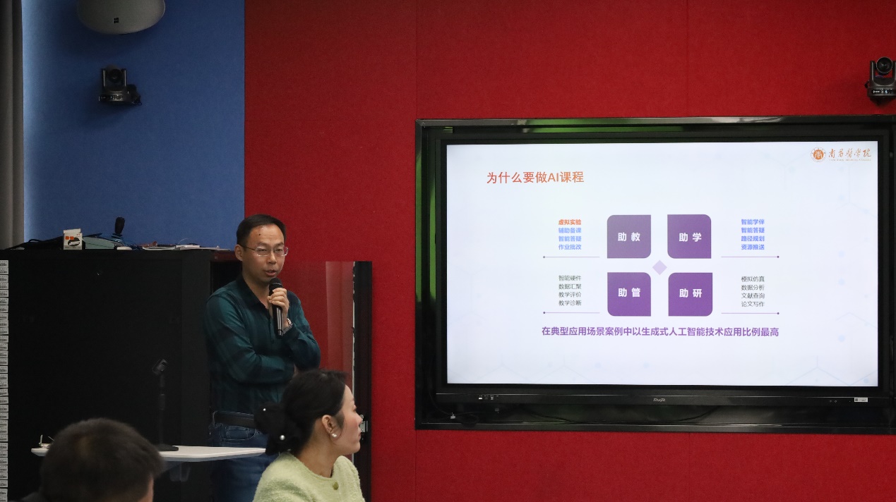 王令东博士作《人工智能背景下高校课程教学的思考》报告(徐晶颖/摄)