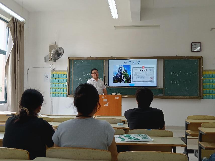 此次招聘会由公司人力资源部经理及其同事共同主持,就公司的经营板块、公益栏目“名医对话”、产品生产和研发、企业荣誉、电商项目、企业文化、晋升制度、招聘岗位、薪资福利等方面向同学们进行了详细介绍。面对同学们有关福利待遇的问题,招聘人员耐心解答。最后,该公司进行了笔试和面试,现场气氛热烈,亮点纷呈。